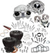 Include a set of S&S Shovelhead-style cylinder heads, a pair of S&S stock bore cylinders (3-7/16" for 74" engines or 3-1/2" for 80"), forged 8:1 compression pistons complete with rings and wrist pins, manifold clamps, manifold seals, all required hardware, and gaskets