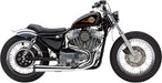 Rear cylinder header pipe runs forward and wraps around the ignition cover for a sleek look and more clearance for the oil dip stick