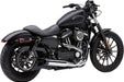 Rear cylinder header pipe runs forward and wraps around the ignition cover for a sleek look and more clearance for the oil dip stick