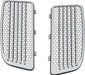 Radiator GrillesChrome-plated ABS housing frames a black honeycomb-shaped metal screen insert to combat debris