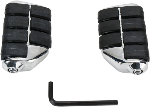 View full detailsDescriptionShift Peg CoverCover your drab OEM peg with this chrome-and-rubber clamshell designUses two setscrews to attachComplement Kuryakyn footp...