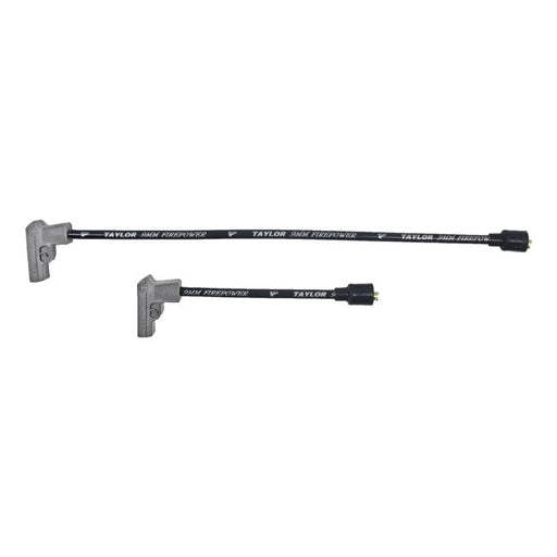 View full detailsDescriptionTaylor, 9mm Fire Power spark plug wire set. Black/silverDetailsIncludes 16" and 7" wires with 90° plug boots and 180° (straight) coil bo...