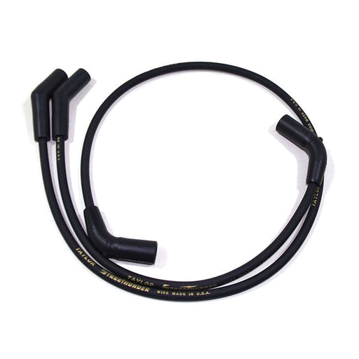 View full detailsDescriptionTaylor, 8mm Street Thunder spark plug wire set. BlackDetailsIncludes two identical wires. 12" long with 90° plug boots and 90° coil boot...