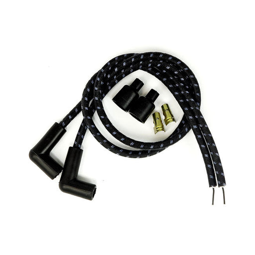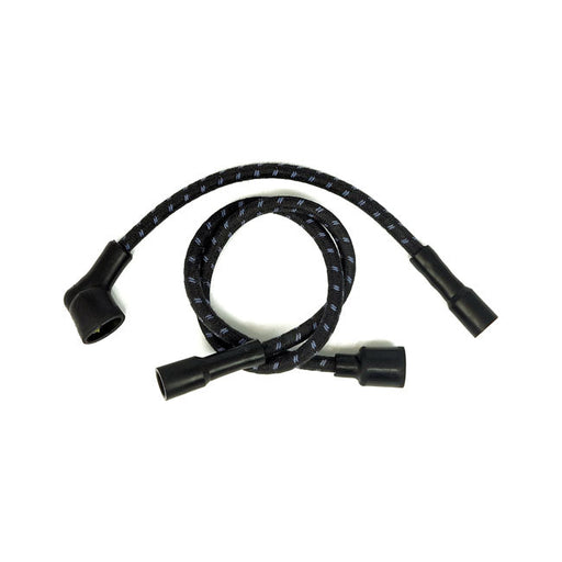 DescriptionTaylor, Classic Thunder braided cloth spark plug wire setDetailsBlack with blue tracer. Includes two identical wires. 12" long with 90°...