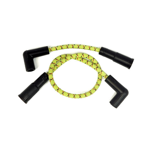 DescriptionTaylor, univ. 7mm Spiro-Pro cloth spark plug wire set. 90°DetailsYellow with black & red tracers. Includes two 24" braided cotton c...