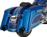 Saddlebags are stretched 5" longer than stock to cover the muffler front to back and give that stretched look