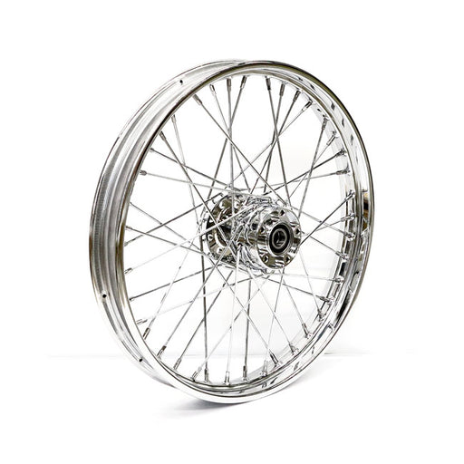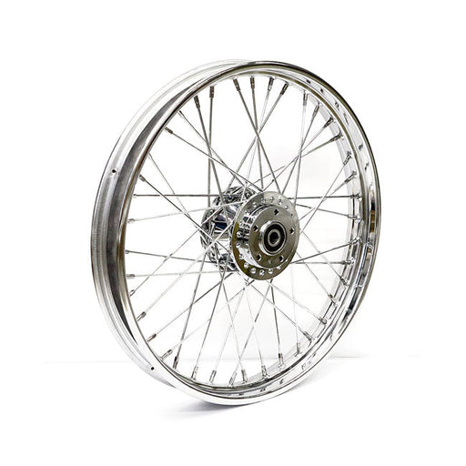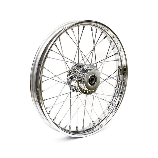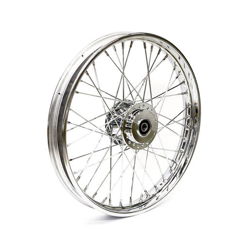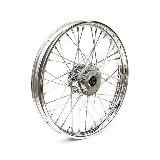 Description2.15 x 21 front wheel 40 spokes chromeDetailsChrome plated 40-spoke replacement spoke wheel, laced and trued. Seals are installed, beari...