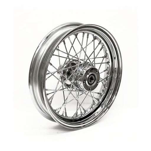 Description3.00 X 16 front wheel 40 spoke chromeDetailsChrome plated 40-spoke replacement spoke wheel, laced and trued. Seals are installed, bearin...