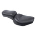 Black. Front 12" wide, rear 7.5" wide. Standard stitch. This one-piece Standard Touring seat features a front bucket for the rider with a slightly raised back to eliminate sliding back while offering reasonable lumbar support. The seat is trimmed with a braided edge skirt that comes down over the frame and fender for a clean look. Two-piece foam is used on a single-piece steel base that mounts to the stock locations.58-84 FL, FX