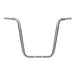 Chrome; Steel; These beefy 1-1/4" diameter Apes come knurled and pre-drilled for internal wiring. Riders arms and wrists are in the optimum angles for comfort and control. Works with 1" diameter risers and with or without e-throttle. Approx. dimensions: 18" end rise x 37" wide x 10" center x 12.5" pullback