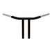 Satin black powder coated; Steel; Built-in straight risers with smooth polished welds and fluid bends. 3-1/2" center to center spacing to fit standard style triple trees. Standard 1/2-13 threaded and drilled for internal wiring. Approx. dimensions: 12" rise; 8.5" center width; 30.5" wide; 8" pullback82-21 H-D mech. or e-throttle with 3-1/2" mount bolt spacing