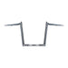 Chrome plated finish. Dimpled and drilled for internal wiring. With smooth inside corners to prevent wiring damage and ease in wiring pull-through. Works with or without e-throttle. Approx. dimensions: 12" rise x 6" wide x 9" pullback x 14" center width and a 37° wrist angle. Note: Fits models with 1" diameter riser clamp area only.82-21 H-D mech & e-throttle (excl. 88-11 Springers; 82-21 Touring) with 1" I.D. risers